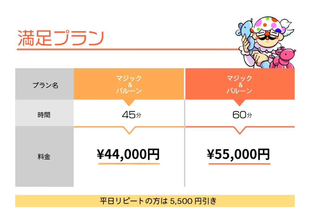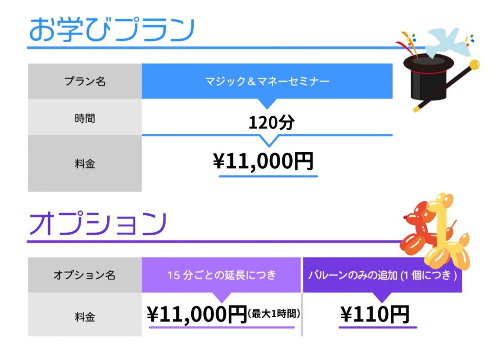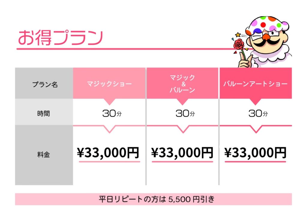 マジック・バルーンアート料金表